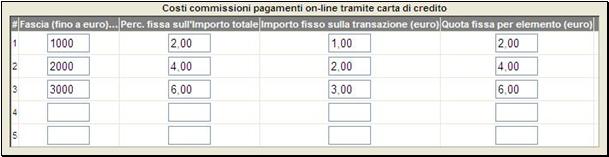Configurare i Costi commissioni pagamenti on-line tramite carta di credito