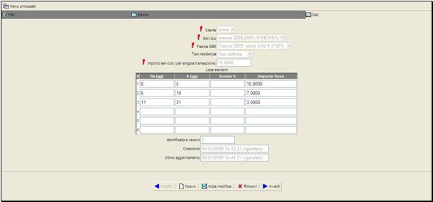 · Definendo un Importo fisso nella relativa colonna. In questo modo, il prezzo basi inserito nel campo Importo servizio sarà ignorato e sarà preso in considerazione solo l’importo fisso relativo a ogni fascia.